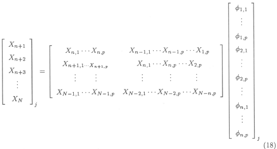 The autoregressive parameters φi- of equation (9) may be determined by the successive application of the simple least squares solution of
