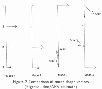 Secondly, because of the closeness of modes 3 and 4, it was not possible to determine which mode shape elements correspond to a particular mode. As was previously the case, mode 2 was identified quite well with an inaccurate estimate of the damping.