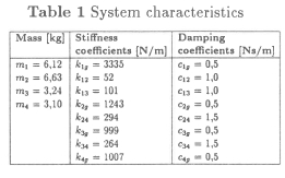 Equally good correlation was found in the second investigation in which the system modal parameters were found based on simultaneous impulse excitations 10 N, 5 N, 0 N and 10 N on masses 1 to 4, respectively (see Table 4).