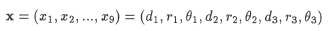 x vector of design variables