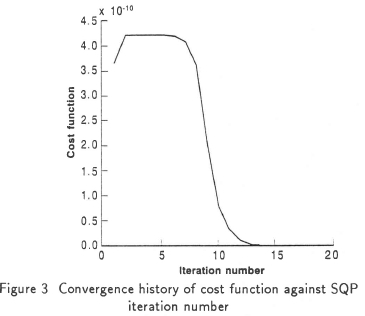 i = 1, 2, 3. The task of optimization is now to determine a combination of sectional profile parameters which would cause the cost function to attain a value as close as possible to zero whilst satisfying the prescribed constraints, i.e. the optimization problem (1) must be solved. This is done by using the sequential quadratic programming (SQP) algorithm included in the IDESIGN code of Arora.fl] Figure 3 depicts the convergence history showing that convergence to a zero value of the cost function is effectively obtained within twenty iterations of the SQP method.