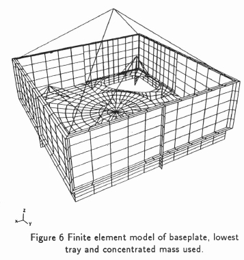 As described above, Sunsat consists of a combination of trays bolted together to form a continuous cubical structure that has high inherent stiffness. Forces between the satellite and the launcher are transmitted through the baseplate and the PAA. The structural stiffness of the satellite assembly mounted on the launcher is therefore strongly influenced by the stiffness of the PAA and baseplate assembly.