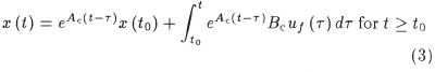 The solution for the continuous state vector, x(t),with initial condition x(t0), has been given by Franklin et al.7 as