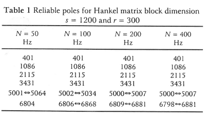 However, Peterson11 states that most modal parameters, specifically poles, converge only after massive over-specification of the Hankel matrix block dimensions, while some poles converge at faster rates than others.