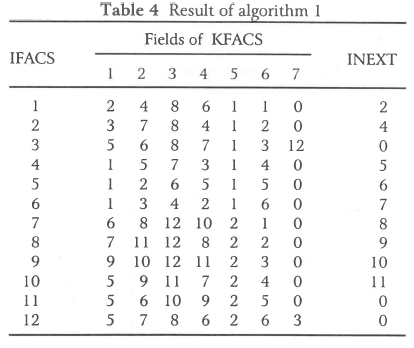 • INEXT(IFACS) is the number of the face in the linked list of uncoupled faces to which the face IFACS points. For example, in Table 4 face 1 points to face 2, which again points to face 4, etc.