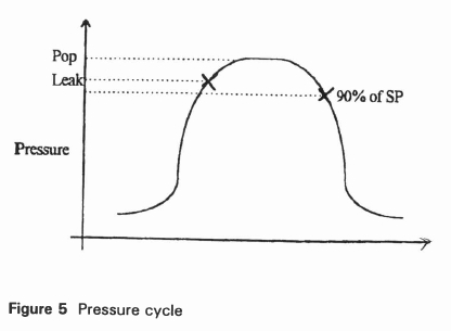 • With the valve on the test bench, the pressure was then further increased until the valve 'popped'. This cycle is illustrated in Figure 5. Both these values were tabulated.