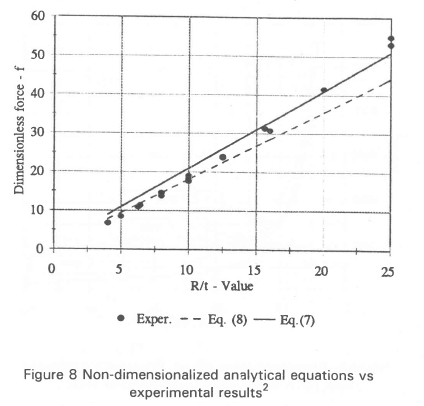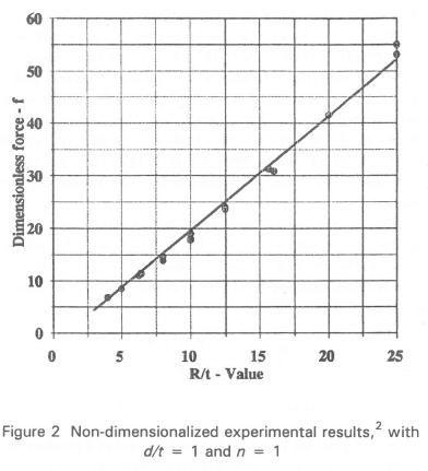 As can be seen from Figure 2 the dimensionless force term is directly proportional to the dimensionless geometry term, within the range (4 < R/t < 25) tested. These results can therefore now be used to predict the behaviour of any device falling within this range.