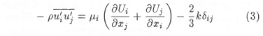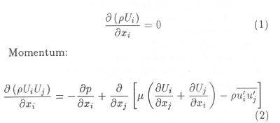 The above equations use tensor-indexing, where ρand μ, are the density and viscosity of the fluid. The time-averaged velocity components are given by Ui, fluctuation terms are expressed as u'. These fluctuation terms lead to extra stress terms,