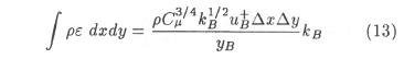 The generation term, Gb, in the turbulence kinetic energy equation is simply modelled assuming that the shear stress term, τw, is found using equation (9) and the gradient term, (∂u/∂y) is equal to uB/yB.
