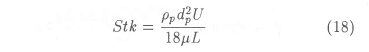 where dp is the particle's diameter. The equation of motion for a particle has two important dimensionless parameters, namely the Stokes number, Stk, and the Froude number, Fr. They are defined, respectively, as: