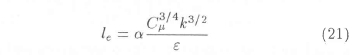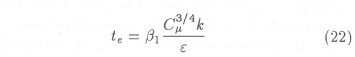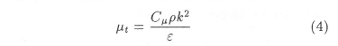 where the term, Cμ, is an empirical constant, and the turbulence dissipation rate is ϵ. The governing differential equations for k and ϵcan be expressed as: