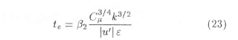 where G is the rate of production of turbulent kinetic energy it is expressed: