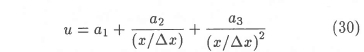 where a1, a2, and a3are the coefficients for the fit. In the extrapolation the four velocity positions upstream of the outflow boundary are used. The velocity position the furthest away from the outflow boundary is used as the datum position for x, and the velocity values at the other three positions are used fcr extrapolation calculation. The ∆x term is the cell length adjacent to the outflow boundary. Therefore, if uniform cells are used near the exit region, the extrapolated velocity value is estimated by (using compass notation),