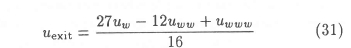 where uexit is the extrapolated outlet velocity. The exit velocity is then corrected to ensure that overall flux is conserved. This formulation appears to reduce numerical errors near the outflow boundary, as detailed.5