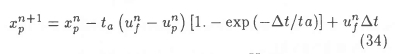 The Ufnp value is set to the most recently predicted value of the fluid velocity. When the above uf(t) equation is substituted into equation (32) then the general solution for the particle's velocity and position can be expressed as: