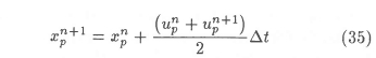 where At is the time-step interval, n + 1 is the final time-level and n is the initial time-level. Equation (33) can then be integrated again to find the position of the particle, xp.