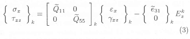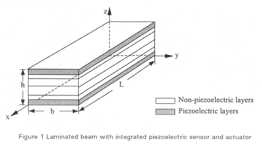 Consider à fibre-reinforced laminated composite beam (length l, width b, and thickness h) containing distributed piezoelectric layers as sensor and actuator that can be on the top and bottom layers in the present beam model (Figure 1). The lamina constitutive relations of smart structure for the kth with respect to the plane (laminate) coordinates (x, y, z), is given as