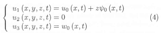 where u0 and W0 represent the mid-plane displacements in the x,z directions, and represents the rotations of transverse normal to mid-plane about the y co-ordinates. Here, we assume that the displacement for the y-direction is neglected and U0, W0, γ0 are only functions of x-axis and time (t) in the present model of beam.