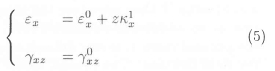 The strain displacement relations of the laminated beam based on a first order shear deformation theory associated with the displacement field are given by