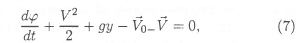 where y is the wave elevation, d/dt is the substantial derivative, and φand V are, strictly speaking, the potential and the velocity under the free surface, respectively. The velocity and potential under the vortex sheet are satisfied according to simple relations:
