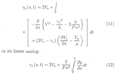 • Assuming the free surface being known, the intensities ϒsand ϒB are calculated iteratively from eqs. (2) and (11). The velocities are found from the Biot-Savart law.