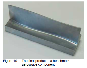 Tool failure during the roughing operation took place after approximately 35 minutes of cutting time (or after 1½ components). Similarly it is calculated that the tool life in the aerospace industry should exceed 30 minutes to ensure an economical viable solution55, as most scheduled tool replacement limes (SRT) are less than this. Figure 16 illustrates the final Ti6A14V product.