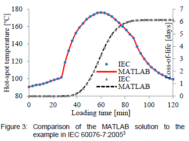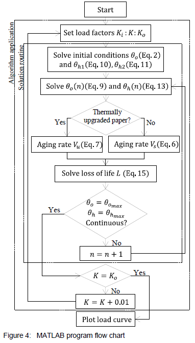 An application of the solution routine discussed is presented in figure 3. The solution routine was implemented in MATLAB and compared to an example provided in Annex C of IEC 60076-7:20053. The logic flow for the solution routine is also depicted in a section of figure 4, highlighted by the segmented square.