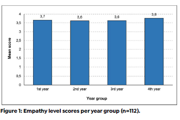 These contradictory results and inadequate research in a South African context indicated the need to measure empathy levels to implement changes to the curricula based on the findings and instill the importance of empathy in students. The value of this study as a mechanism for skills development in student training is founded on the notion that empathy is a skill. As early as 1976, Keefe25 suggested that empathy is a set of behaviours that accounts for a skill crucial to the successful treatment of a patient. He went on to say that behaviours constituting the empathic skill are acquired throughout life and include feeling, thinking, perceiving, and communicating25. Thus, empathy used to be considered as merely an innate characteristic that could not be taught, but studies have indicated that this essential human capacity is susceptible to change, therefore, progressing to a characteristic capability that can be taught19.