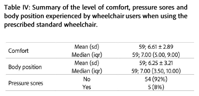 Level of Comfort, Pressure Sores and Body Position experienced by Wheelchair Users