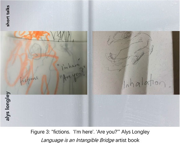Multimodal practices can offer concrete ways to materialise responsiveness. We share an understanding of creative practices as expanded fields wherein the disciplinary tropes of artistic forms spill beyond each other, so that the forms of creative works are not limited to their typical material expression. Through our varied research practices, we have experimented with how such expanded fields open up space for experimental collaboration and new forms of teaching (see Fragments of Silent Skin, Invitation poetics, Mapping Porous Borders/ Mapeo de Bordes Porosos). The dis-orientation caused by the suspensions of time and space, created by the pandemic, guided us to re-situate our own practices as artists, teachers and researchers. Our studio pedagogies of co-creation are largely predicated on working in a shared room - in these spaces even when we work alone we do so togethier and we are able to witness each-others' experimentation and vulnerability. We find this kind of co-working intensely motivating. Sharing work is a rich opportunity for community-building, wherein our differences provide new ways of experiencing what an art practice can be, and how it can mean differently for different people. With this taken away from us, we found ourselves setting students creative tasks and parallel ways to playfully document and share them with each other. These sharing and documentation practices became central to developing our experimental pedagogies. When teaching classes in which many students were inexperienced in dancing and performing, the challenge of sharing dances made alone in bedrooms became too much to ask. Instead, we pressed into care and expanded assignment briefs and workshop content to include experimental forms of video, drawing, creative writing, and dance practice, to soften the intensity of performing for classmates.