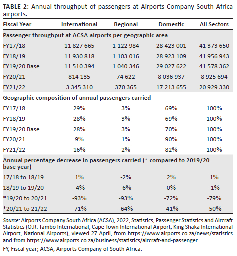 ACSA, 2022, Statistics, Passenger Statistics and Aircraft Statistics (O.R. Tambo International, Cape Town International Airport, King Shaka International Airport, National Airports), viewed n.d., from https://www.airports.co.za/news/statistics and from https://www.airports.co.za/business/statistics/aircraft-and-passenger.