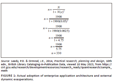External dynamic exasperations are a classic problem in the AA of EAA, as they include scaling business and changing environment, maximising return on investment, security control against cyber threats, user friendly interface, engaging and training staff, storing large amount of data, time and costs, upgrading software, maintenance and third-party system integration (Ortiz & Wizard 2022). Doshi (2022) identifies several advantages such as business intelligence, business continuity planning, enterprise content management, enterprise messaging systems, human resources and finance management, payment process system, enterprise resource planning and customer relationship management. Foremost, from the researchers' indulgent, there is no study that has instantaneously determined the relationship between EDFs and the AA of EAA within SMEs and SCM context. The sole purpose of a research gap in this study is to summarise EDEs with existing, hidden and/or primitive narratives. The EDEs revolve on complex legal and regulatory constraints, a lack of external financing, LTC, RA, hardware systems compatibility and SSC. The problem hypothetical question is: 'how will EDEs affect the AA of EAA for SCM within SMEs?' As such, the theory of effectuation details two reasoning: (1) managerial casual thinking alluding that the future is neither found nor predicted, but made based on focus controllable EDEs, (2) entrepreneurial effectual thinking aided for imagining a possible new-end using a given set of production means (Do Santos 2014). On that annotation, this study seeks to provide a comprehensive approach to the concepts of EDEs and the AA of EAA. Thus, it adopts SCM success factors. External dynamic exasperations are uncontrollable factors arising from market and macro business environments and are the root cause of innovation aversion, rational risk aversion and information sourcing. The technology adoption lifecycle is a description of customer behaviour related to the EAA's AA, often broken down into innovators, early adopters, early majority, late majority and laggards. Alternatively, SMEs could consider good innovation practices, for example, disruptive innovations, incremental innovations, radical innovations and paradigm-shifting innovations.