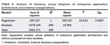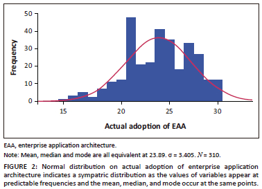 Table 1 shows the Kolmogorov-Smirnov test for normality of EDEs and the results indicate that the EDEs do follow a normal distribution, where D (310) = 0.163, which is more than p = 0.05. The validation on confirmation processed leads to the conclusion that the EDEs can be used for statistical examination with a linear regression model for analysing the relationship between EDEs and the actual adoption of EAA for SCM in SMEs.