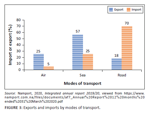 These infrastructure limitations, combined with the country's geographical expanse, contribute to the complexities associated with enhancing transport connectivity and accessibility in Namibia (World Bank 2020). Namibia's transport connectivity and accessibility can be compared to South Africa, its neighbouring SADC country with a highly developed transport network. In 2020, the Port of Walvis Bay in Namibia handled approximately 1 005 000 TEUs of containers, showcasing its significance as a regional transportation hub (Namport 2020). In contrast, Port of Durban, one of South Africa's major seaport, managed over 2.7m TEUs of containers and more than 81m tonnes of cargo in the same year, highlighting its substantial capacity and connectivity (Mthembu & Chasomeris 2023).