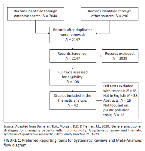 The purpose of this literature review is to identify and summarise effective strategies for reducing plastic pollution in GSCs, in line with the goal of achieving global sustainability. To achieve this, we formulated a research question that asked what measures can be taken to minimise plastic pollution in GSCs. We followed a systematic approach to gather and evaluate relevant literature, adhering to the guidelines of the Preferred Reporting Items for Systematic Reviews and Meta-Analyses (PRISMA), to ensure a transparent report on our purpose, methodology, and findings (Page et al. 2021).