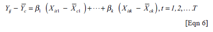 is the mean of independent variables for country c across all years, β is vector coefficient to be estimate, εit is the error term for country c at time t and