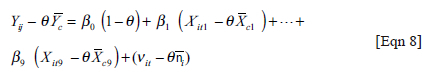 is the average values of the independent variables for all countries, while θ represents the parameter that indicates weight given to between-group variation versus within-group variation and Vit represents error term for country i at time t.
