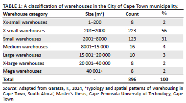 Following the logic outlined by Onstein et al. (2021), the sizes of the building footprint polygons were used to classify the warehouses into specific size categories, as presented in Table 1. This classification scheme facilitated the analysis of warehouses of varying sizes across the City of Cape Town.