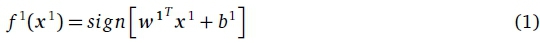 where b1 eS is the bias and w1e 9td are the weights at t = 1. f1 is a linear SVM with b1 and w1 values that give the optimal separation of the x1 in D1. The values of b1 and w1 are obtained by solving the following Convex Constrained Quadratic Programming (CCQP) problem (Cortes & Vapnik, 1995):