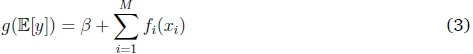 where y is the target, x = (x1,x2,... ,xM) is the input with M features, g is the link function and fiis a univariate shape function.