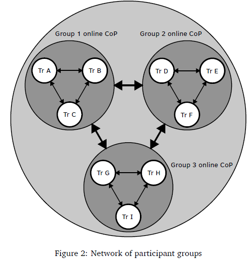 The three WhatsApp Messenger groups collaborated online. The intended outcome at this stage was focused more on their interaction regarding the IBP approach. Each group acted as a CoP, as shown in Figure 2.