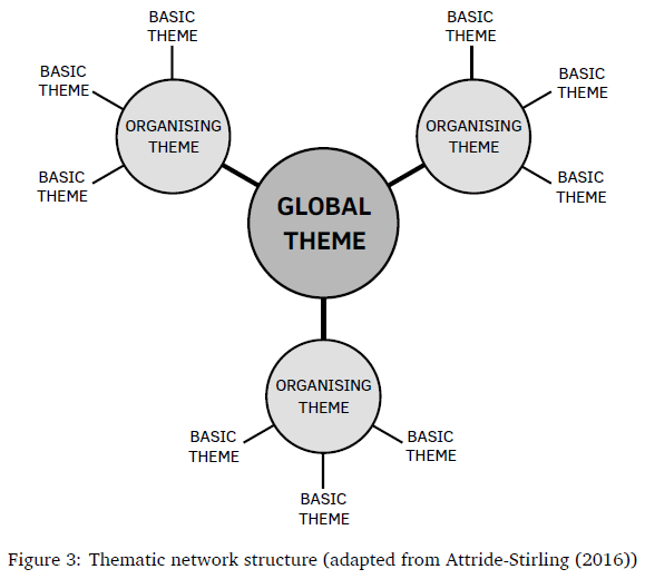 Data were analysed using thematic network analysis, which presents data in a web-like network. Through reading and re-reading the data three different levels emerged: basic themes, organising themes and global themes (Attride-Stirling, 2016; Creswell, 2014). The basic themes represented the lowest-order meanings that could be extracted from the textual data. Several related basic themes were then grouped together to come up with organising themes. The organising themes summarised the main assumptions of the basic themes. They were further grouped to form superordinate global themes that covered all the issues covered in all the data. The thematic network is presented in a web-like structure in Figure 3.