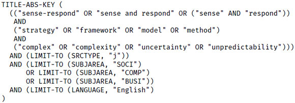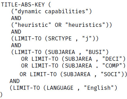The following search expression was applied to title, abstract and keyword fields, and it limited the results to journal articles in English from the Social, Computer, and Business Sciences:
