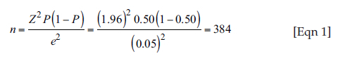 The clinical records were randomly selected using a probability random sampling method with the aid of a random function: fx = rand (num) of an Excel spreadsheet (Microsoft 365) for Windows 11, where num is the patient records number (or the hospital file number). The required minimum sample size for the whole sample of the study was calculated using the statistical formula of Cochrane shown in Equation 1:
