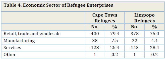 Keywords: Refugees, informal sector, entrepreneurial economies, xenophobia, Cape Town, Limpopo.