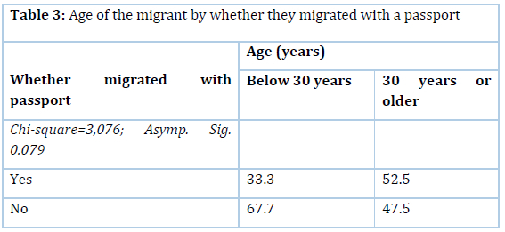 Young men have been associated with illegal migration to South Africa due to their inability to afford official documents such as Zimbabwean passports (Manamere, 2014). The study assessed for association between age at migration and migrating clandestinely. This would show which of the two age groups, younger and older people, was more desperate to leave the country during the crisis. More than half (48 out of 83, or 57.8%) of the migrants relocated to South Africa without passports (result not shown). Although there was no significant association between age at migration and whether migrants migrated without a passport, some patterns could be discerned in the distribution. Two-thirds (67.7%) of young migrants aged below 30 and half of those aged 30 years or older (52.5%) migrated to South Africa without official documents (Table 3). In other words, young migrants were slightly more likely to migrate to South Africa clandestinely than their older counterparts. This was probably because they were less positioned to have raised enough money to secure official travelling documents, especially Zimbabwean passports.