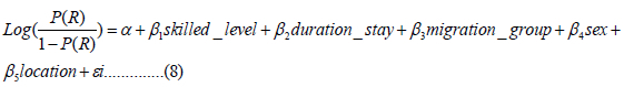 The functional form of the regression model above allows this study to estimate the impact of skills and the duration of stay of the emigrants on the odds of remittance inflow into Nigeria as specified below: