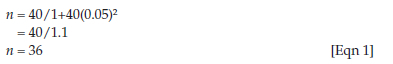 The formula, (n = N/1+N (e)2) by Yamane (1967) was considered in calculating the pre-validation sample as shown below: