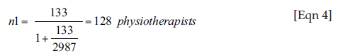 Therefore, in a population of 2987 physiotherapists, who were registered with Medpages, the minimum sample required was as follows: