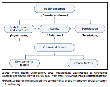 World Health Organization, 2001, International Classification of Functioning Disability and Health, viewed 10 July 2023, from http://www.who.int/classifications/icf/en/.